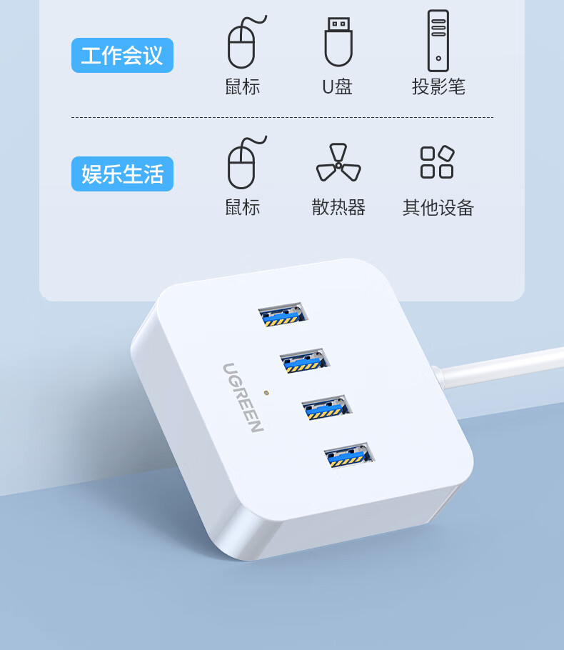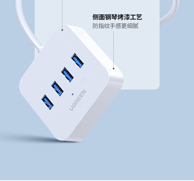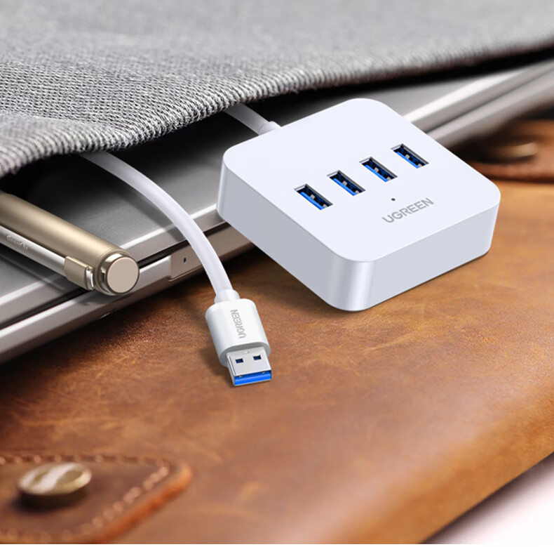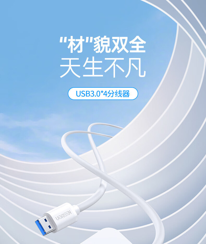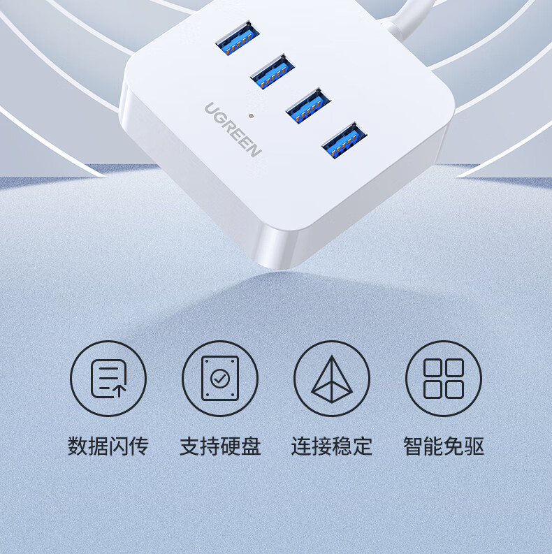 綠聯(lián)USB3.0分一拖四集線器延長線1.5米白 30221