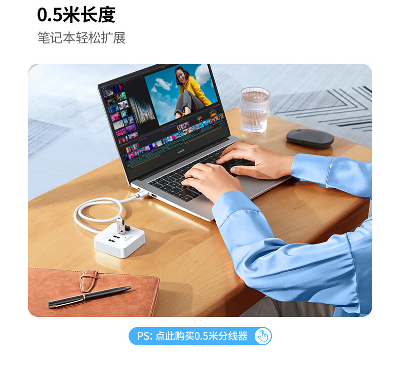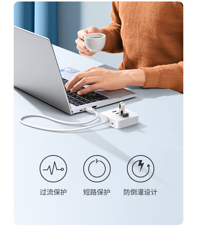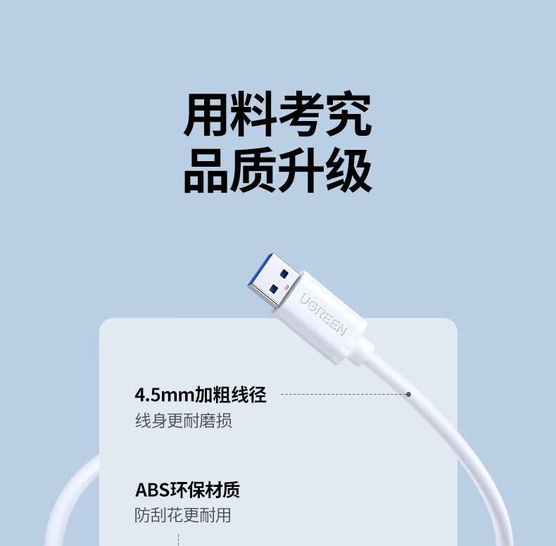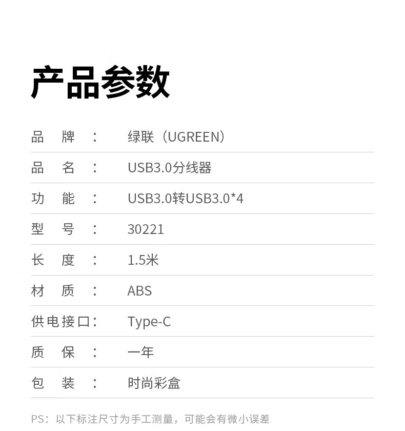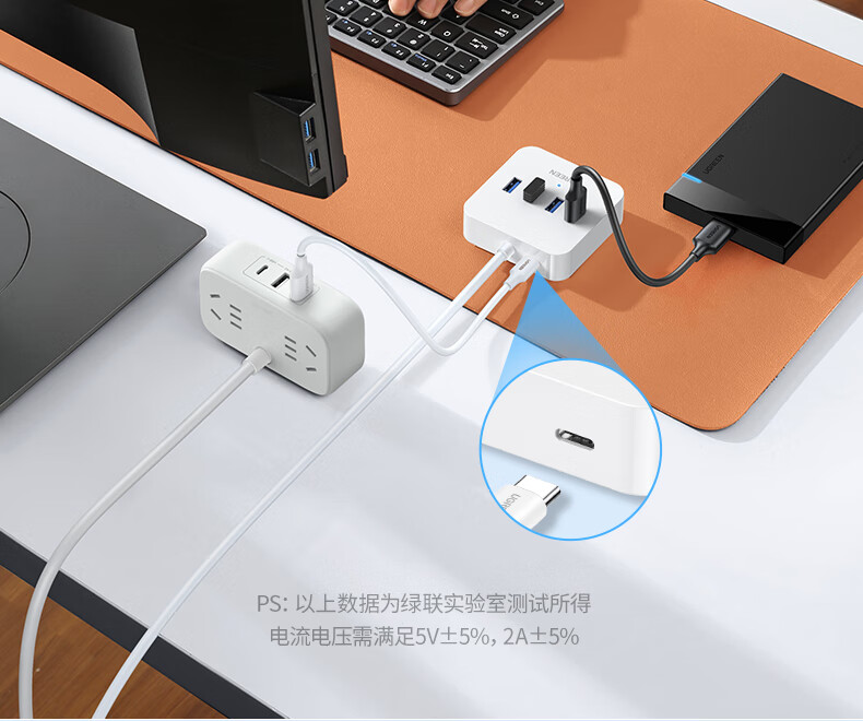 綠聯(lián)USB3.0分一拖四集線器延長線1.5米白 30221