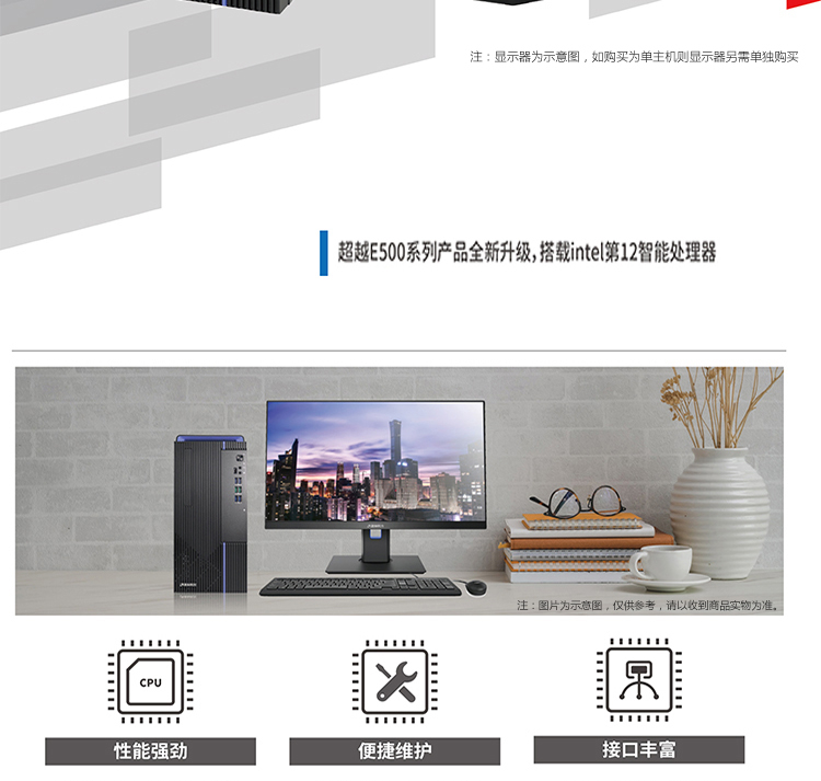 清華同方超越E500臺式電腦(I5-12400/8G/1TB機械硬盤/集顯/200W/WIN11家庭版/P15L/23.8寸顯示器)