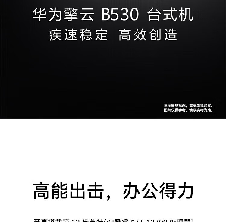 華為擎云B730-K7621M臺式電腦(i7-12700+16GB+256GB+1TB)有線鍵鼠//23.8寸顯示器