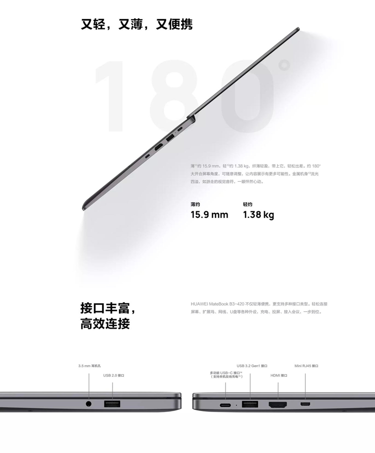 華為MateBook B3-420 NDZ-WFH9A筆記本電腦(Inteli5-1135G7+16GB+512GB)