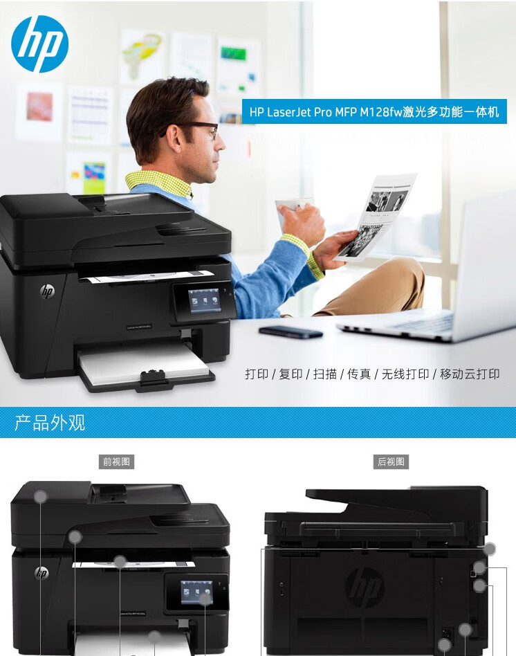 惠普128fw A4黑白激光一體機:四合一、有線/無線打印