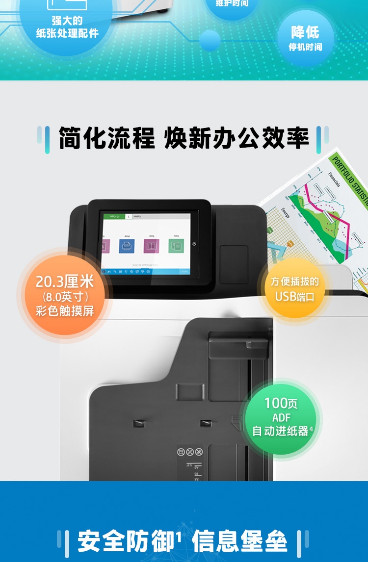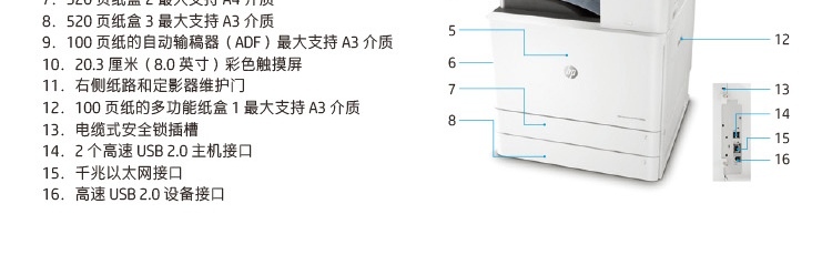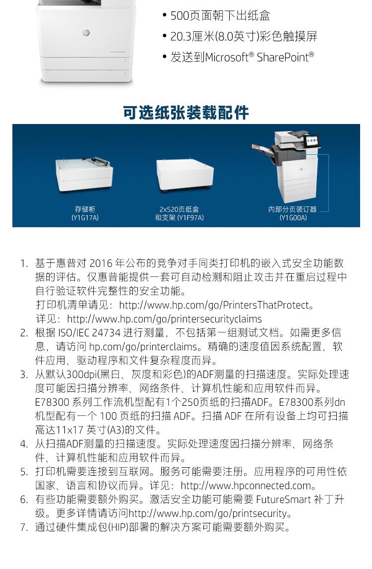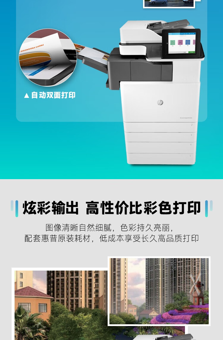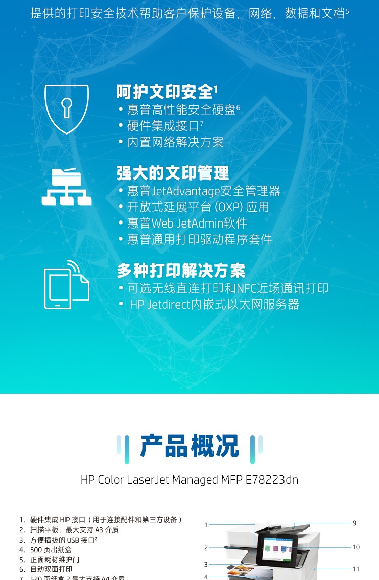惠普E78223dn A3彩色激光復合機:打印、復印、掃描、雙面器、雙面輸稿器、2紙盒
