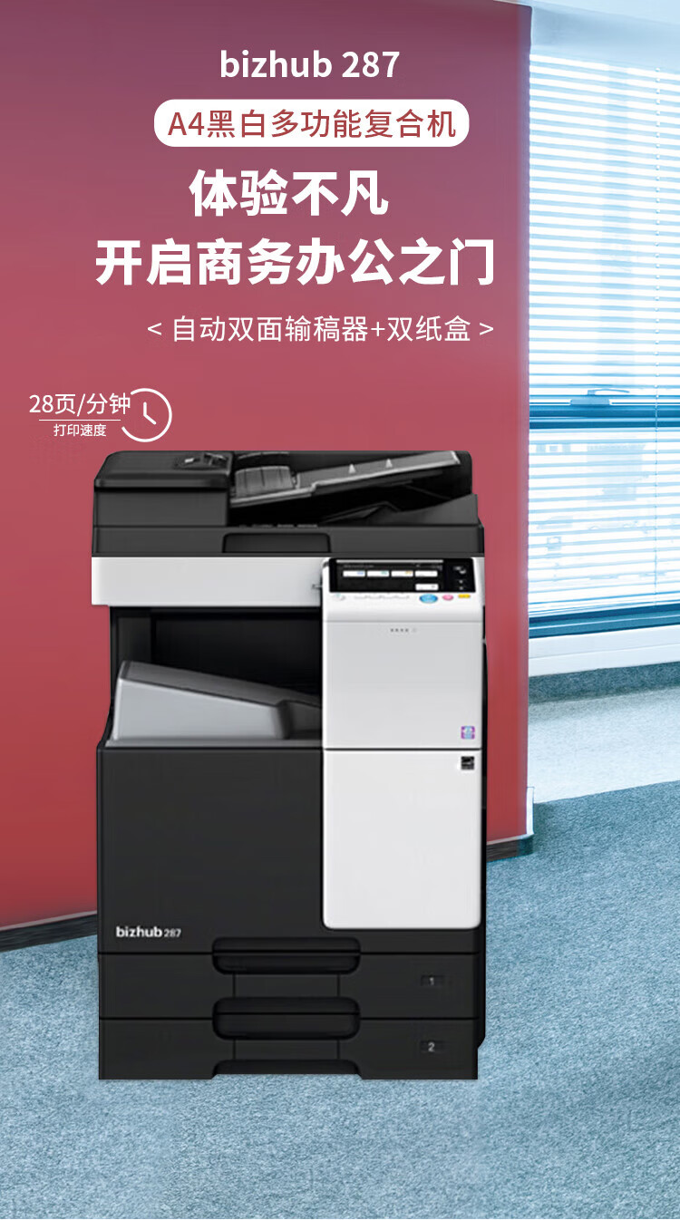 柯尼卡美能達C286i彩色多功能復印機:28張、打印、復印、掃描、雙面器、雙面輸稿器、2紙盒、機柜