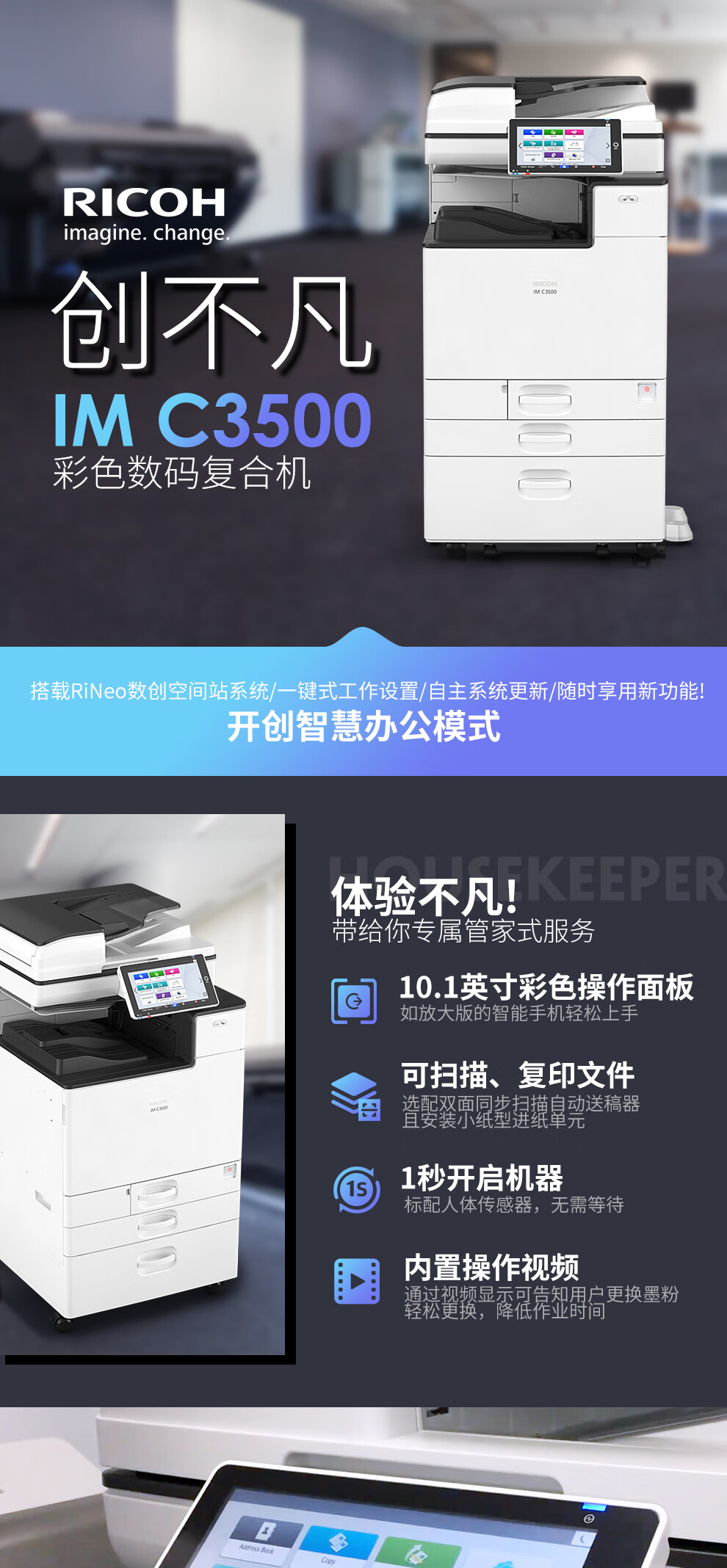 理光IMC3000/A3彩色多功能數碼復合機/主機+雙面器+雙面同步輸稿器+2紙盒+機柜