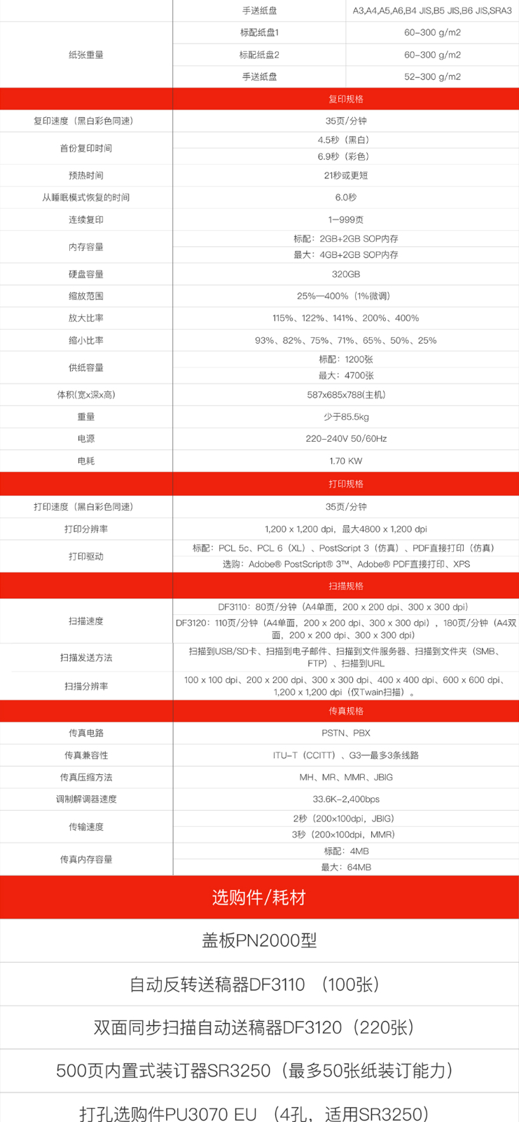 理光MC2001/A3彩色多功能數碼復合機(主機+雙面送稿器+工作臺)