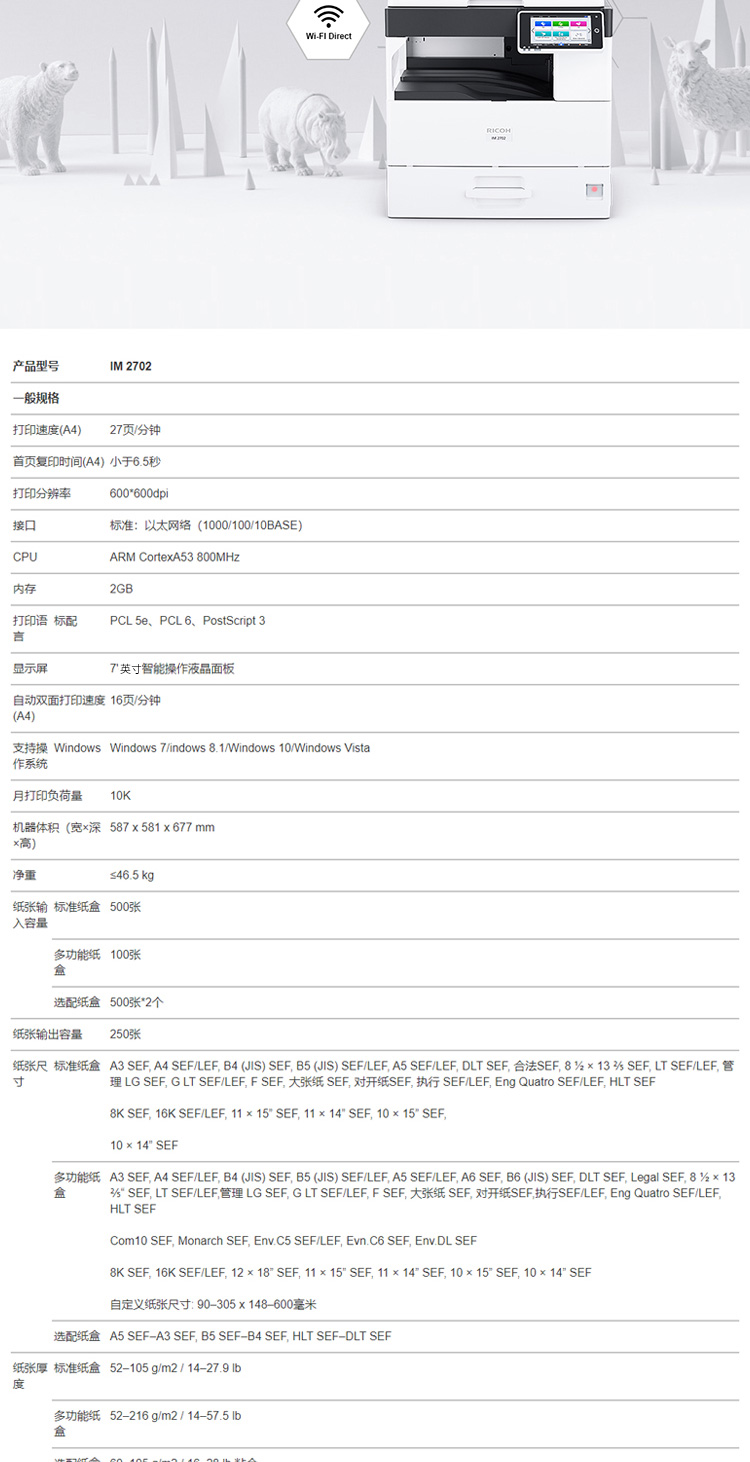 理光IM2702/A3黑白數(shù)碼復(fù)印機(jī)(主機(jī)+送稿器+單紙盒)