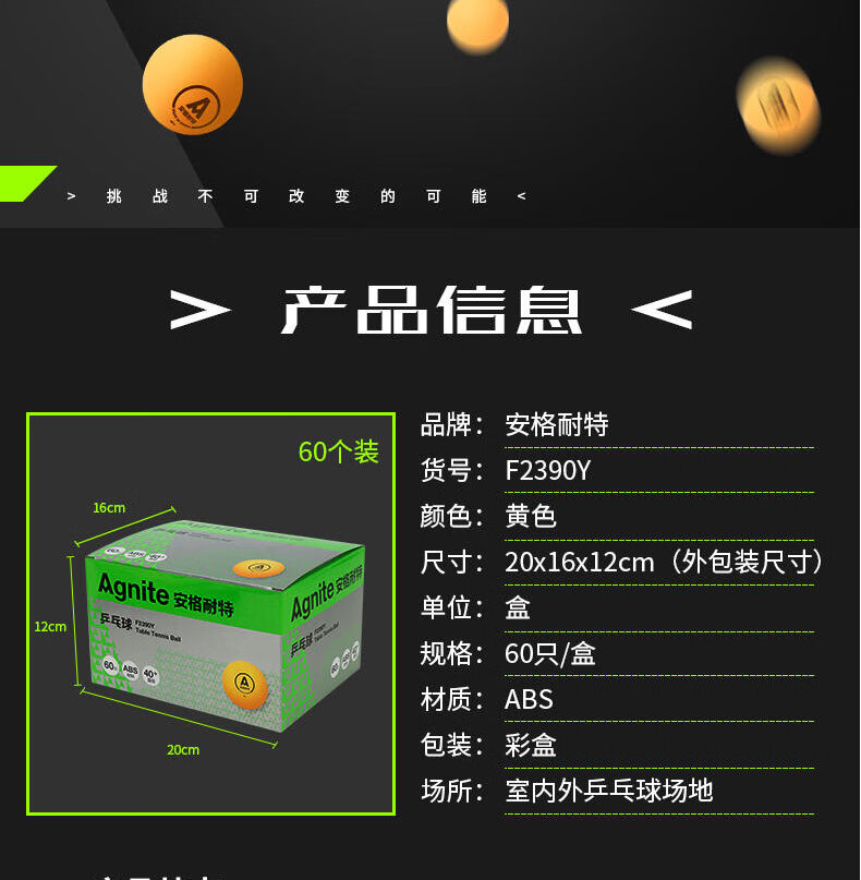 安格耐特F2390W乒乓球(白色)(60個/盒)