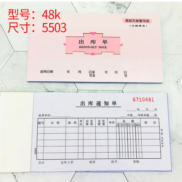 萊特5503三聯(lián)無碳復(fù)寫出庫單48K*10