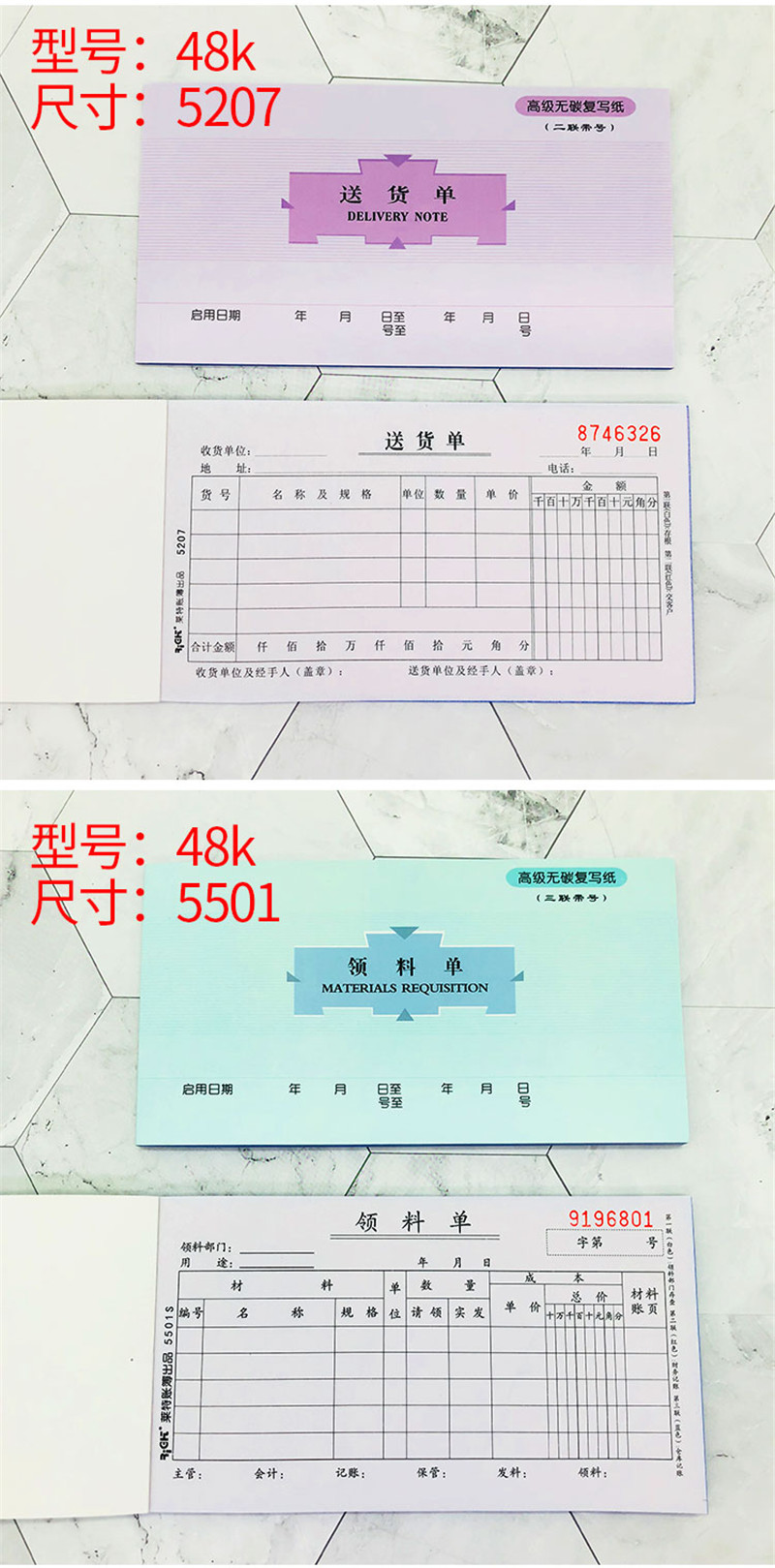 萊特5501三聯(lián)無碳復(fù)寫領(lǐng)料單48K*10