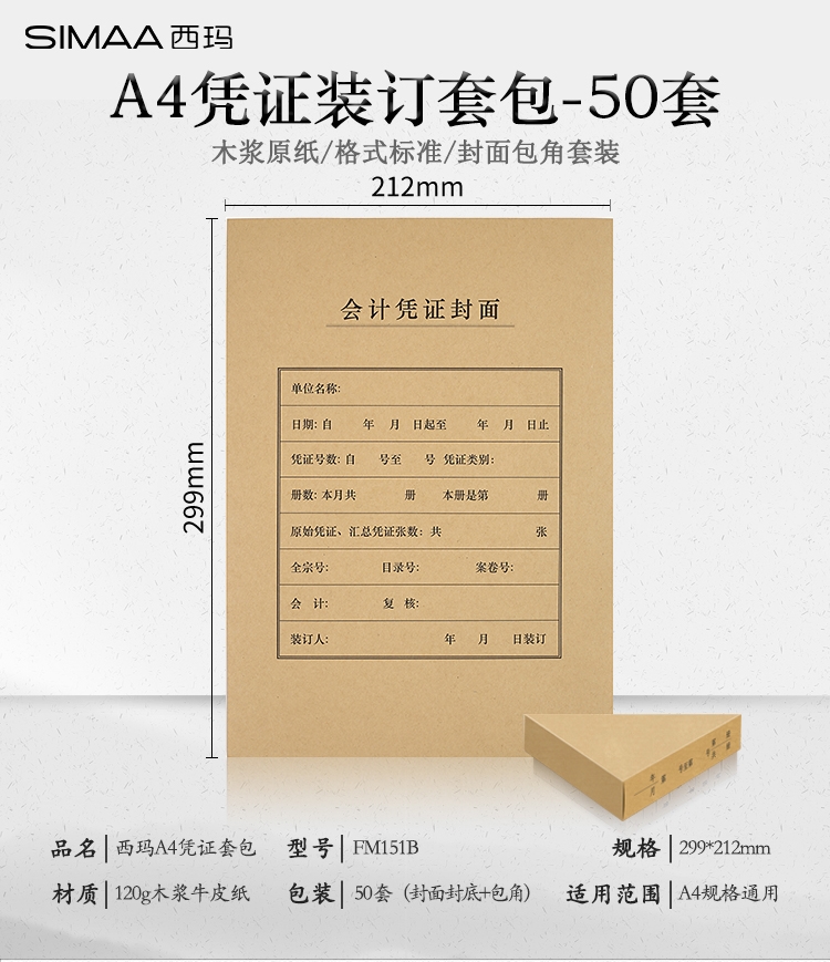 西瑪A4豎會計憑證封面FM151*50pcs