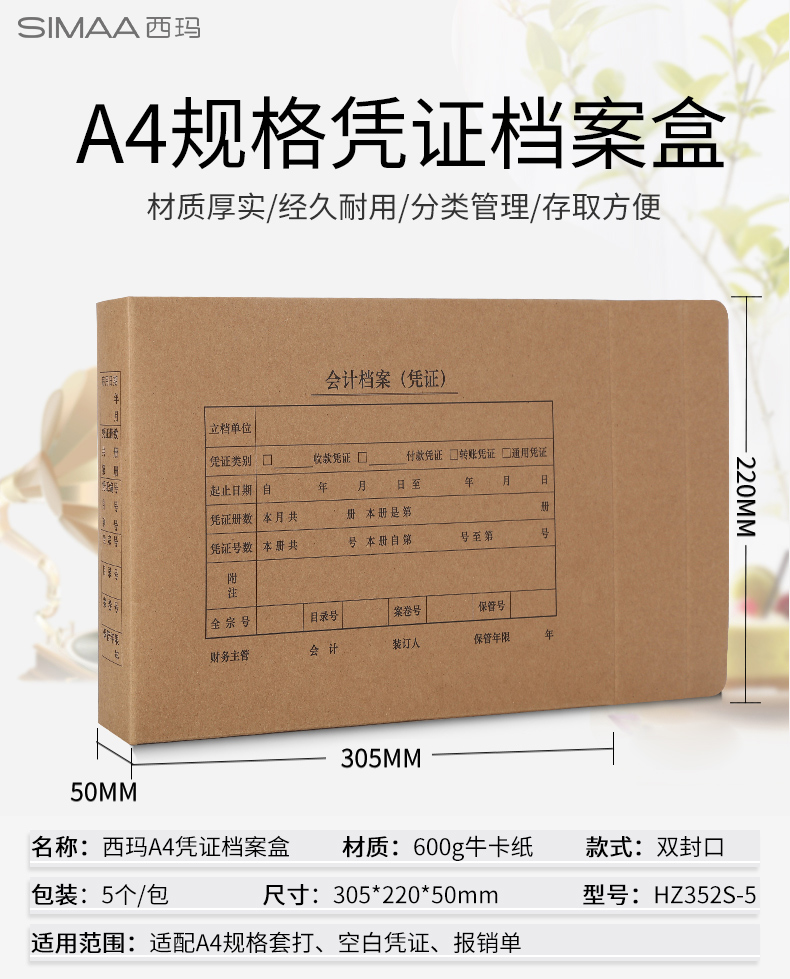 西瑪A4橫板雙封口憑證盒HZ352S/305*220*50)