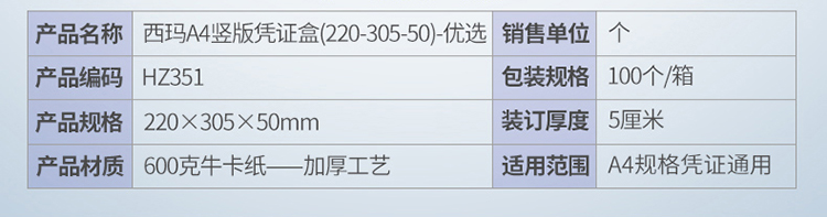 西瑪A4橫板雙封口憑證盒HZ352S/305*220*50)