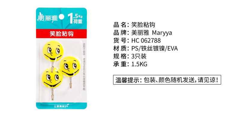 美麗雅HC062818簡色經典小粘鉤6個/板