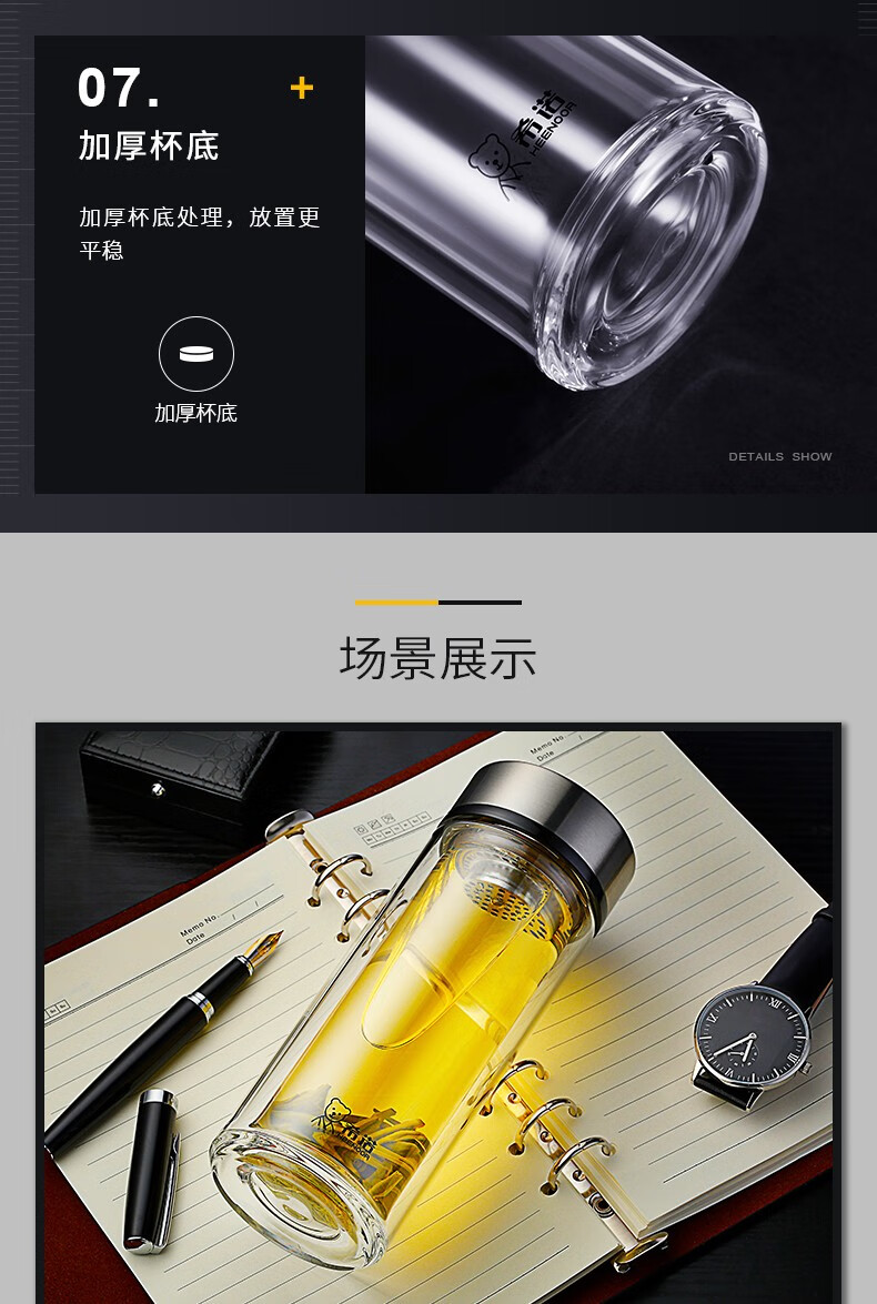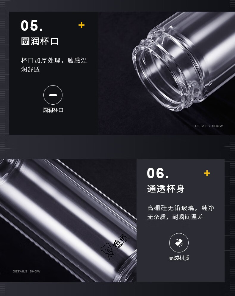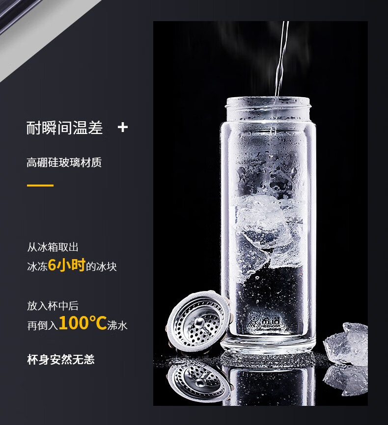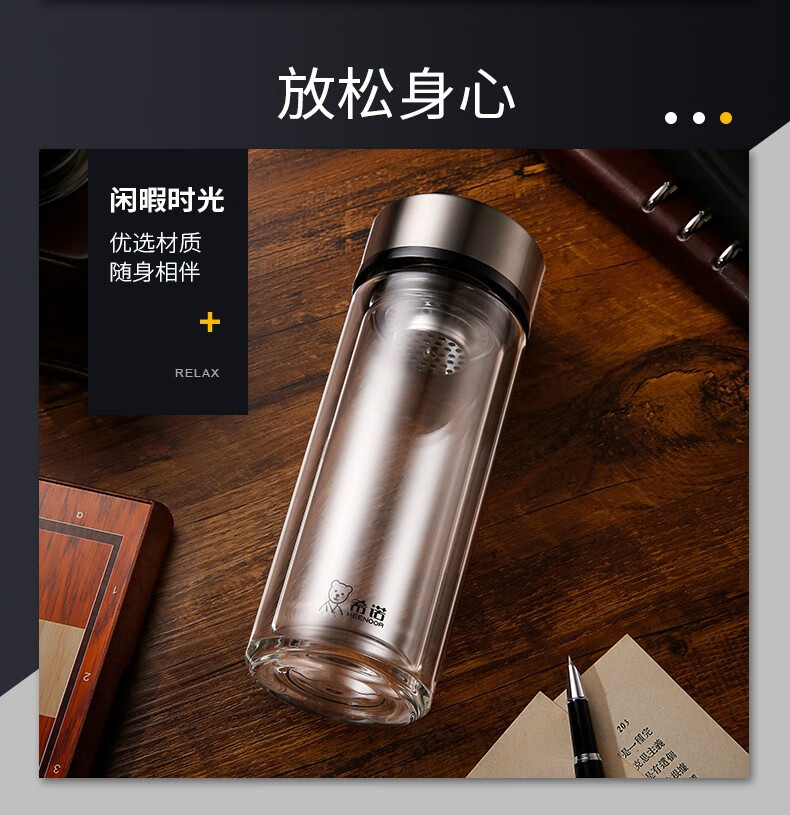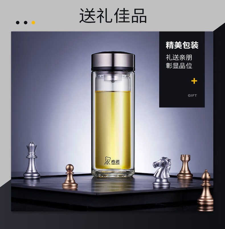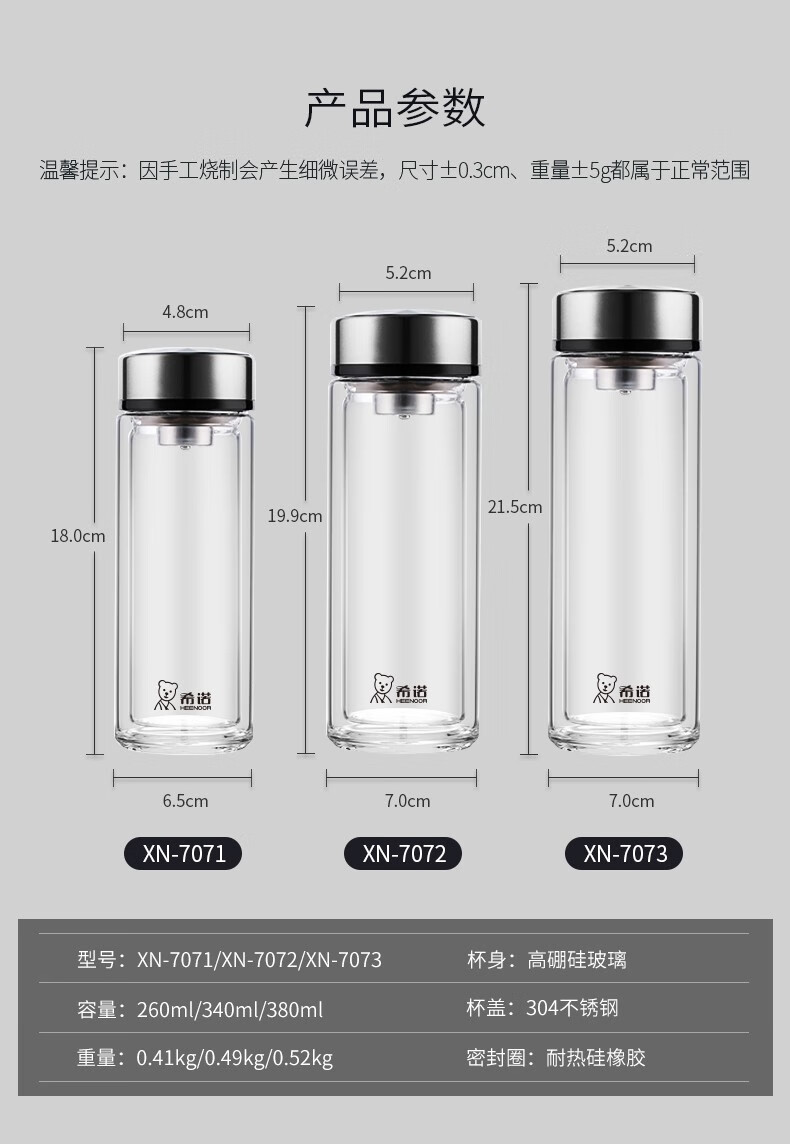 希諾XN-7073雙層真空玻璃保溫杯380ml