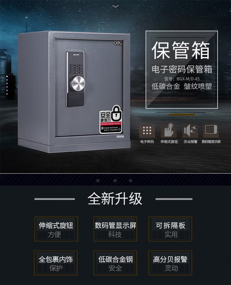 得力3646A電子密碼保管箱H795(淺灰)得力3646A電子密碼保管箱H795(淺灰)