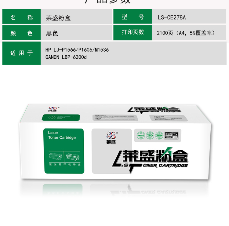 萊盛 LS-CE278A 硒鼓 黑色 適用于HP LJ-P1566/P1606/M1536,CANON LBP-6200d