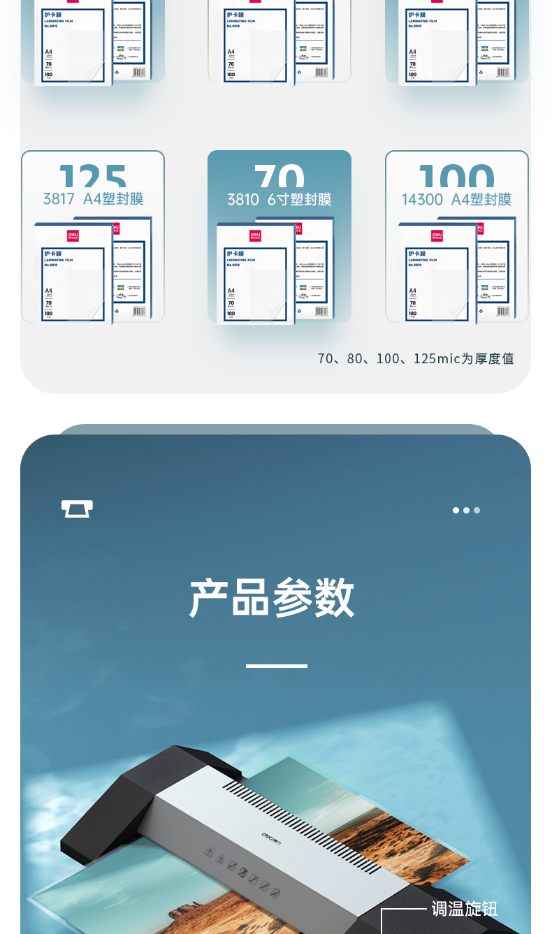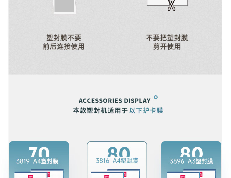 得力3816塑封膜A4 8S(透明)(100片/包)