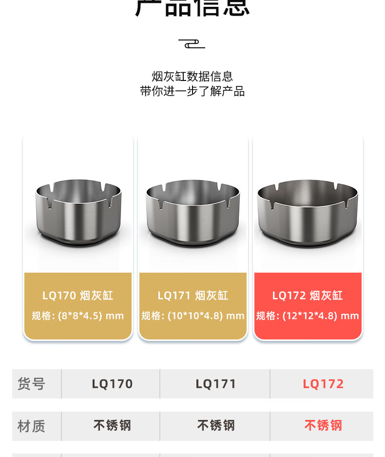 得力LQ172不銹鋼本色煙灰缸12cm(大號(hào))