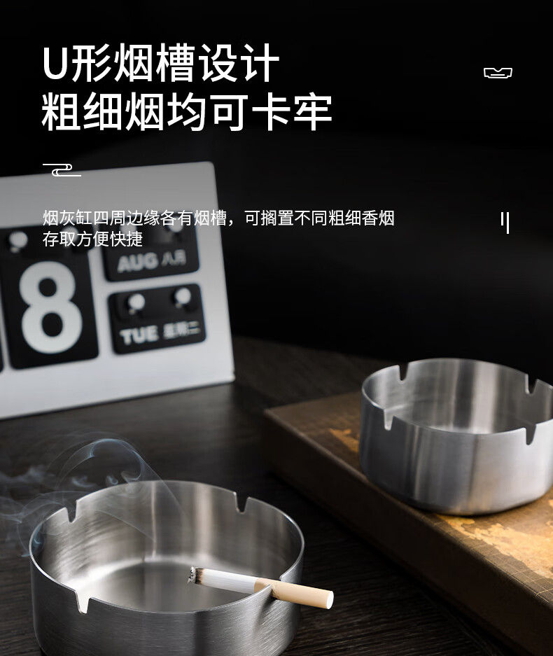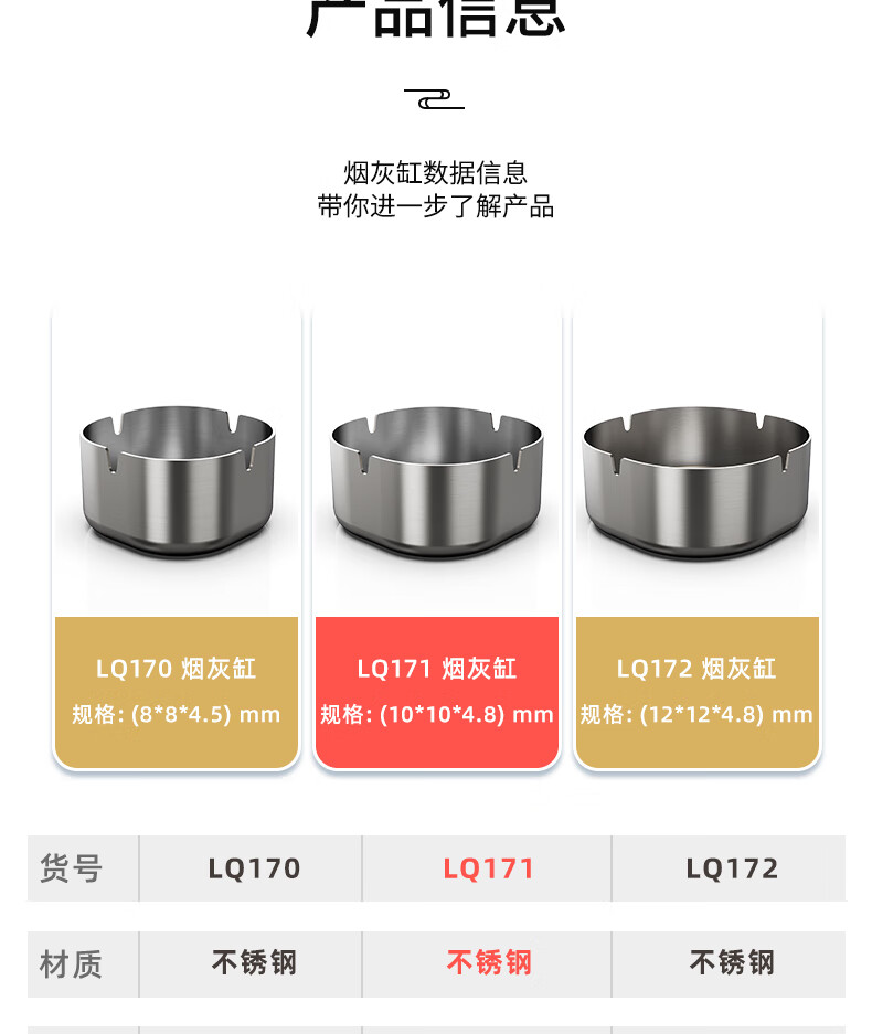 得力LQ171不銹鋼本色煙灰缸10cm(中號(hào))