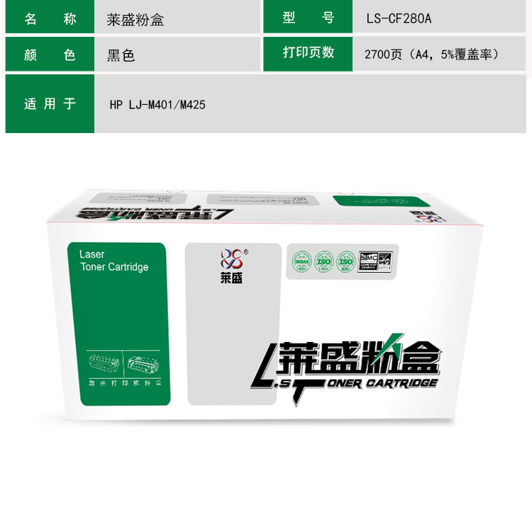萊盛 LS-CF280A 硒鼓 黑色 適用于 惠普HP LJ-M401/M425