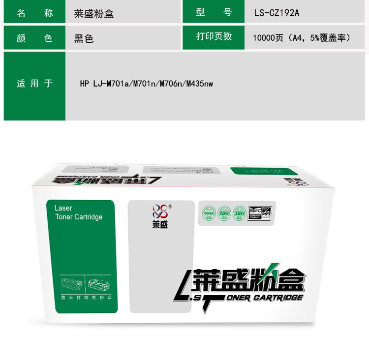 萊盛 LS-CZ192A 硒鼓 黑色 適用于 惠普 HP LJ-M701a/M701n/M706n/M435nw