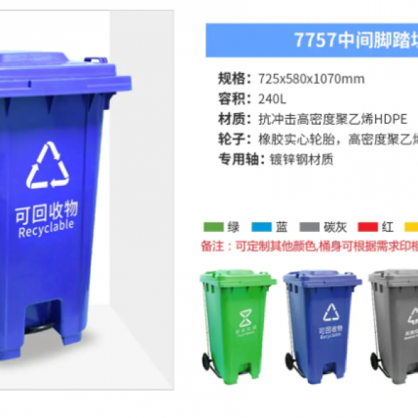 恒豐7757中間腳踏垃圾桶720*560*1080mm(黃色)240L