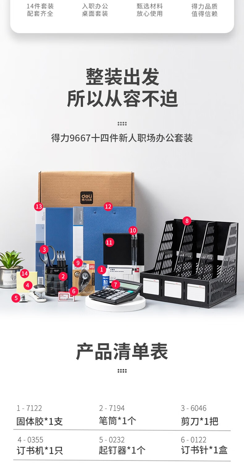 得力(deli)新人入職套裝 辦公文具14件套/文具禮包/文具禮盒套裝 辦公用品 9667