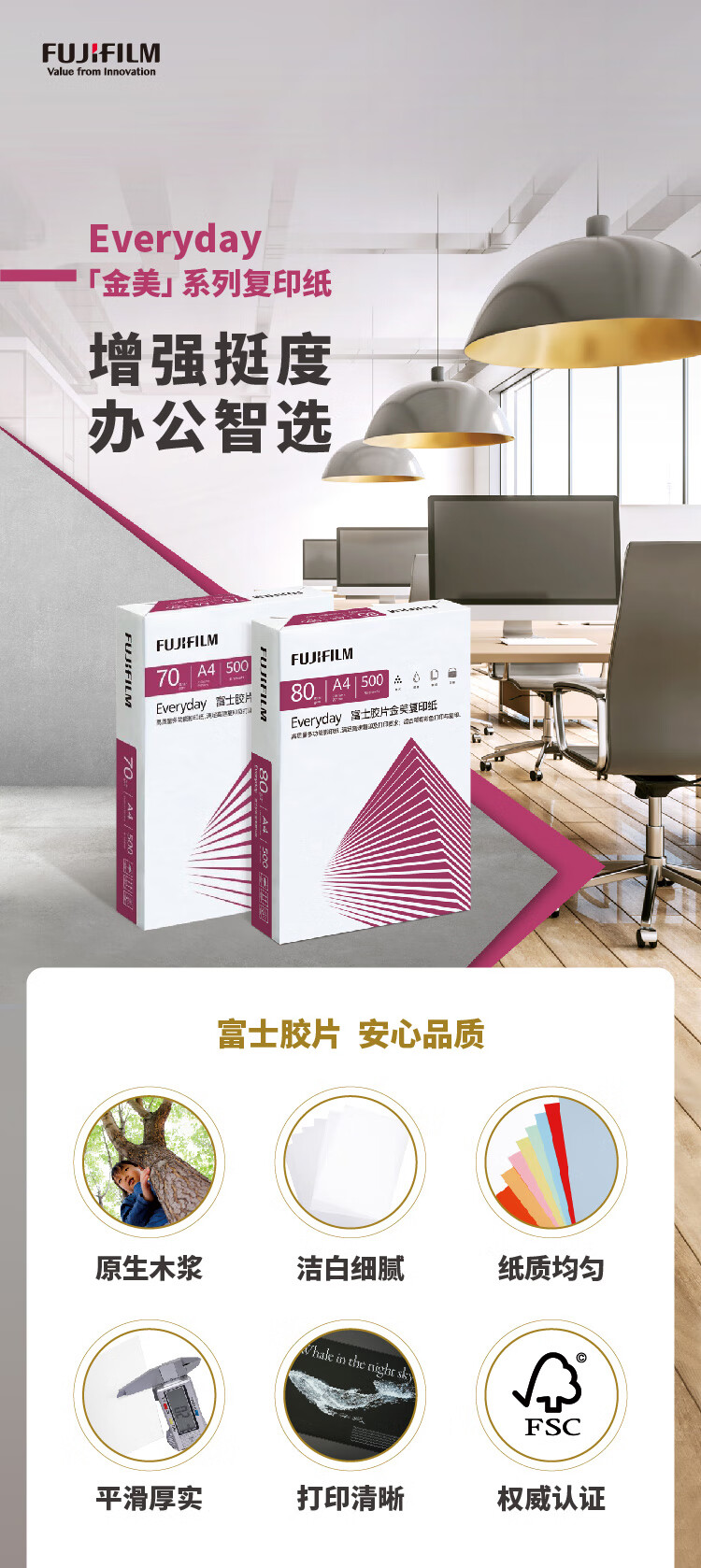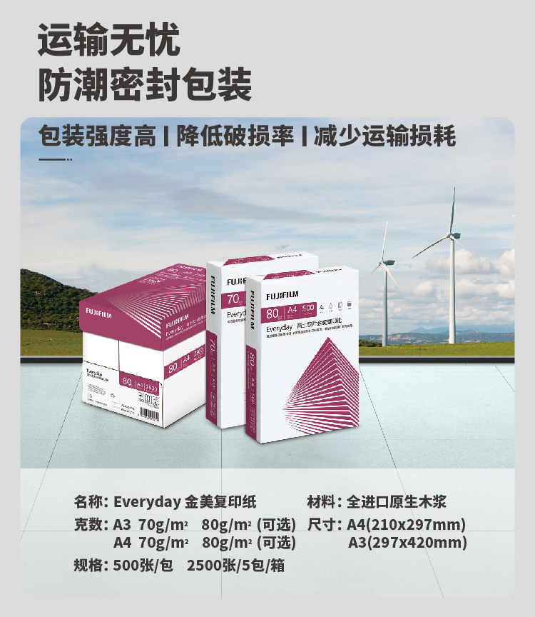 富士膠片金美70g A4復印紙 500張/包 5包/箱(2500張)