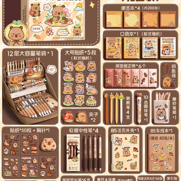 快力文WJL157卡皮巴拉文具套裝--豪華套裝(飛機盒)