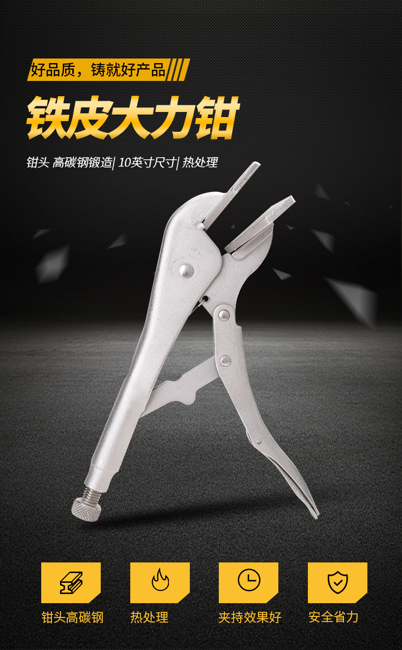 得力(deli)大力鉗10寸折邊大力鉗鐵皮鉗焊接鉗平板大力鉗扁嘴大力鉗 DL20016
