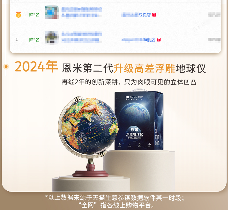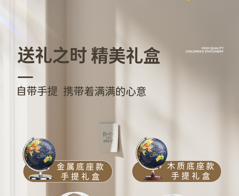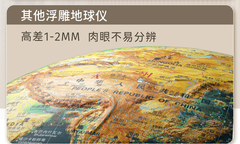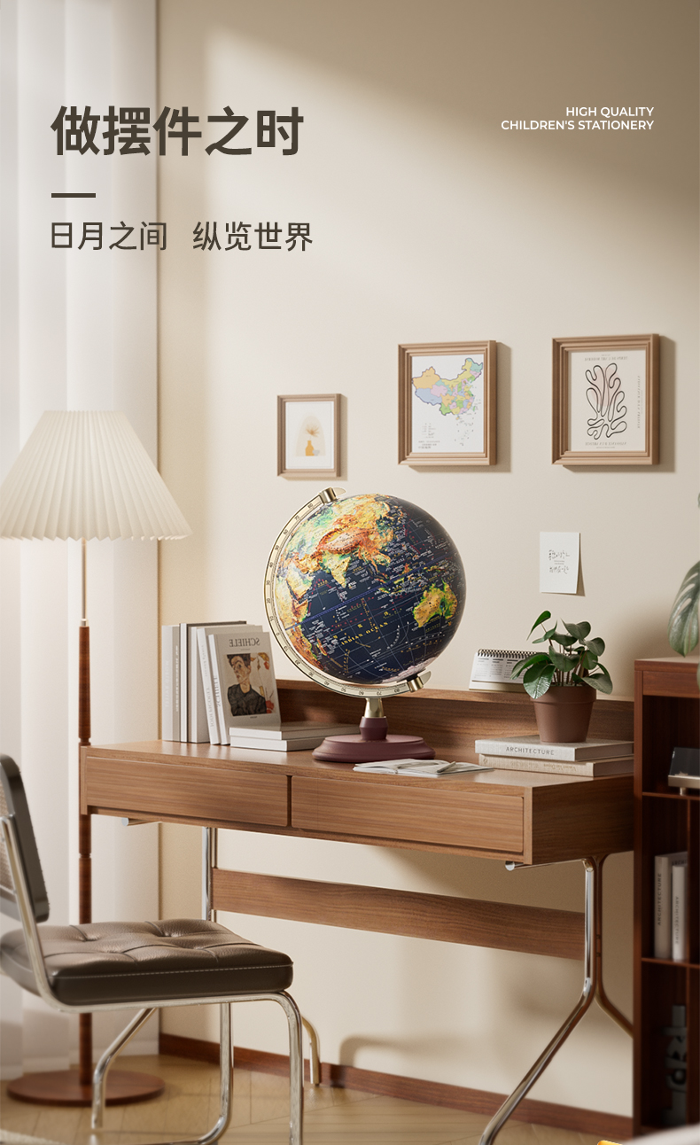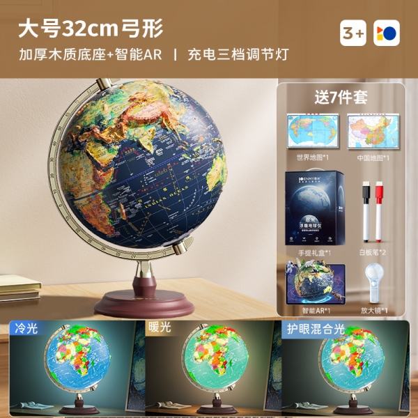恩米科技YSE33-木質(zhì)底座升級(jí)高差浮雕地球儀-32cm-青古銅弓形刻度-三檔燈帶AR-禮盒裝
