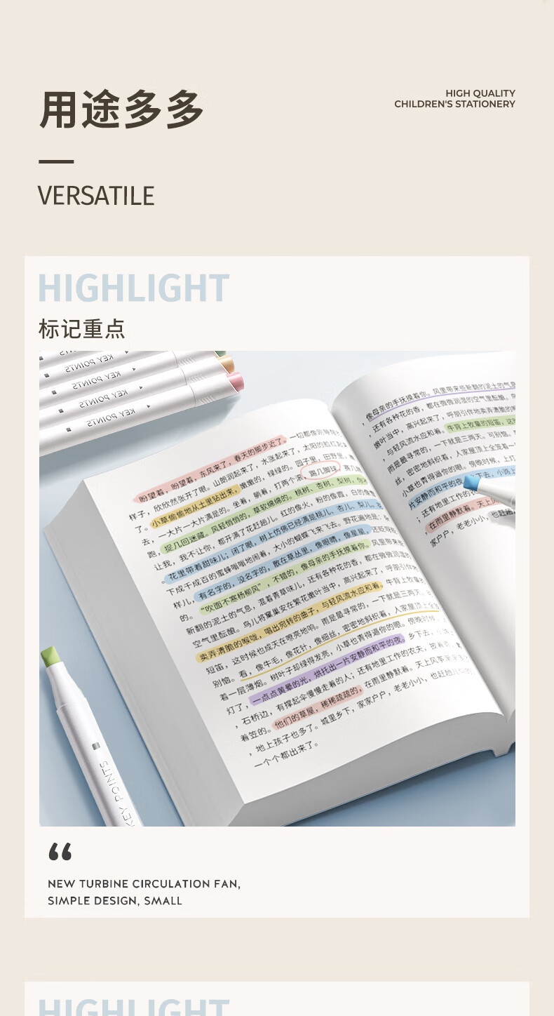簡繁 5色莫蘭迪圓桿熒光筆套裝 新型軟頭彩色水性記號筆學生課堂重點標記筆大容量雙頭手賬筆 開學文具禮物