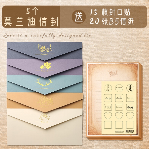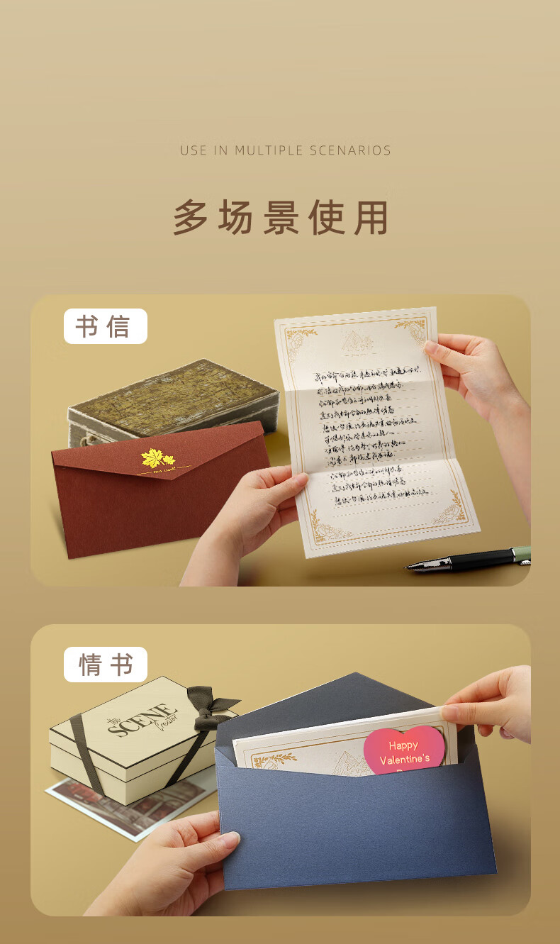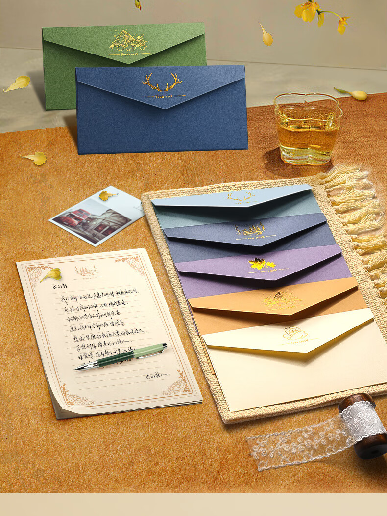 簡繁 信封信紙套裝 燙金創意精美古風賀卡明信片送老師生日禮物火漆禮品文藝表白情書邀請函 簡約款/40件套
