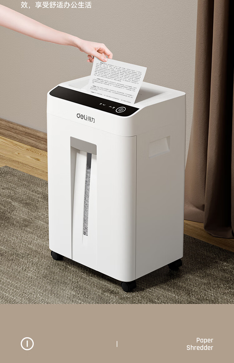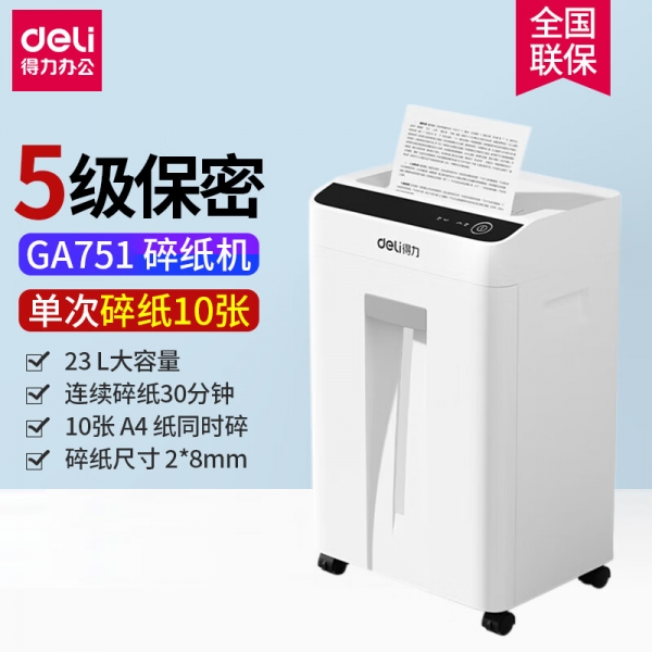 得力(deli)GA751碎紙機(jī)德國(guó)5級(jí)保密手動(dòng)單次碎10張23L大容量文件粉碎機(jī) 可碎紙/訂書釘 10張 30分鐘