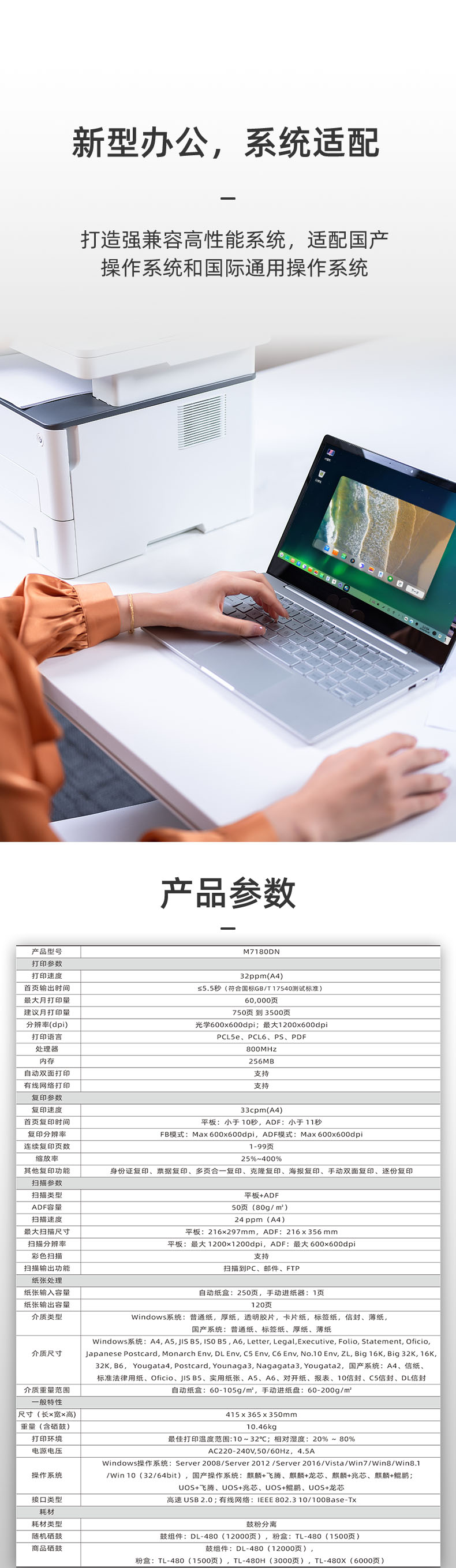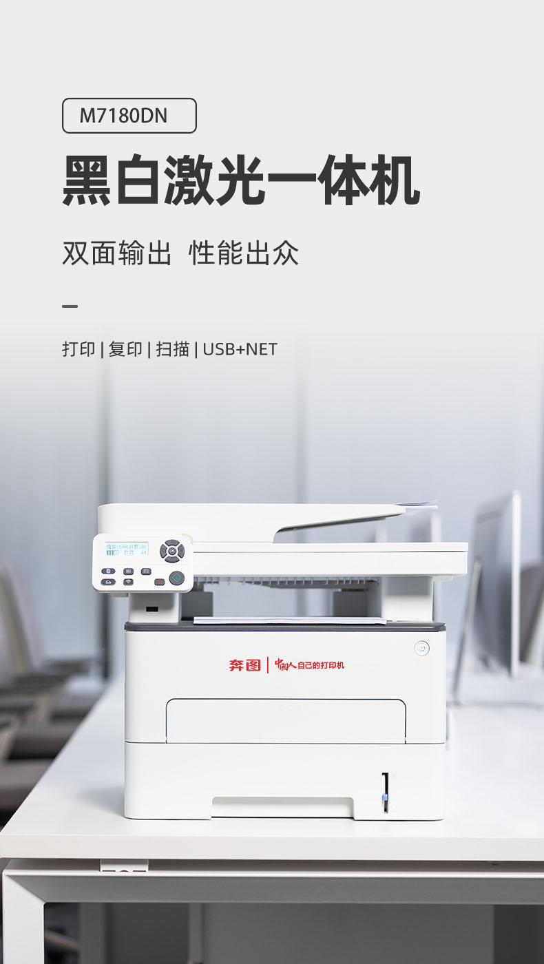 奔圖(PANTUM)M7180DN 黑白激光一體機 自動雙面 打印復印掃描 A4商用辦公高效